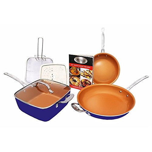 Deep square pan, Lid for deep square pan, Fry basket, Steam rack, 12.5" fry pan with handle, 9.5" fry pan, Downloadable Recipe book with 50 recipesSet Includes: 7 PieceDimensions: 10 inches x 10 inches x 23 inches