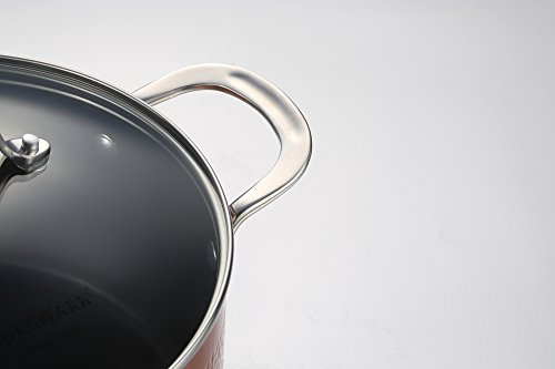 5.8 QT covered stockpot, diameter 24 cm/9.5"Excellent Nonstick Performance-3 layers of nonstick coating ensure food just slides off and easy cleaning, allowing you healthy cooking with little oil or fat. 100% PTFE/PFOA/Cadmium /lead free.