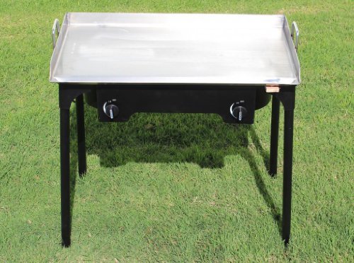 Set Includes: 1) Stainless Steel Griddle Top. Size: 32" Wide x 17" Depth x 2" Height 2) Manual Ignition Double Burner. Size: 31" Wide x 16" Depth x 29" HeightConcord Full Stainless Steel Flat Top Griddle w/ Manual Ignition Double Burner Stove Stand (w/ High Pressure Regulator Hose)Portable 18/10 Stainless Steel Griddle with Cast Iron Manual Ignition Double Burner Stand Great for Any Grilling.
