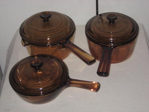 Corning Visions Visionware 6 Piece Amber Set - .5L Sauce Pan w/Lid, 1L Sauce Pan W/Lid & 1L Sauce Pan w/ Pour Spout w/ Lid