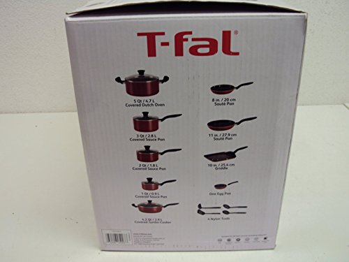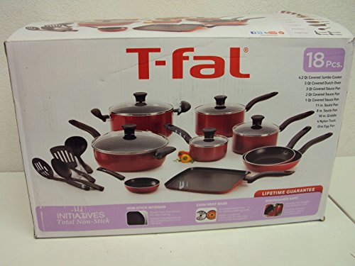 Nonstick exterior - fast and easy to clean, nonstick interior for easy cooking and easy clean up;New ergonomically designed stay-cool handles;Aluminum construction, venting tempered glass lids;Even heat base, Delivers even heat distribution for reliable cooking results;Oven safe to 350-degree (fahrenheit), dishwasher safe, limited lifetime warranty, safe for all cooking methods except induction;Ships in Certified Frustration-Free PackagingT-fal A777SI64 Initiatives Nonstick Inside and Out Dishwasher Safe 18-Piece Cookware Set, Red18-Piece