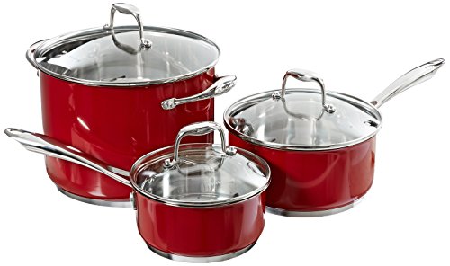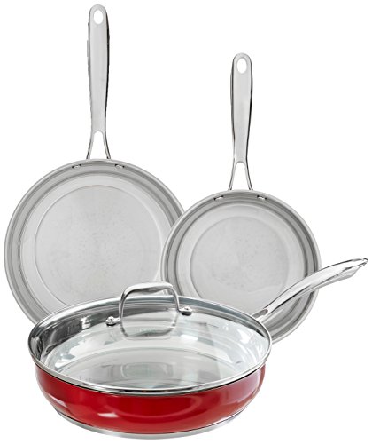 Enjoy the durability of stainless steel in three contemporary color choices. This dishwasher safe Stainless Steel set includes: 8" Skillet, 10" Skillet, 1.5-Quart Saucepan with Lid, 3.0-Quart Saucepan with Lid, 3.5-Quart Saute Pan with Lid, 8.0-Quart Stockpot with Lid.18/10 Stainless Steel with Colorfast FinishStainless Steel Base