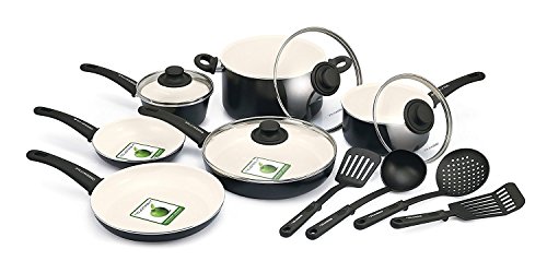 Premium 14 Piece Cookware Set Nonstick Ceramic Coating - No PFAS / PFOA / Lead/ Cadmium 14 Piece, Black, Glass Lid, Featured on Food Network