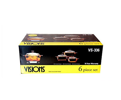 Visions Vs-336 Pot Kitchen Cookware Saucepan Heat-resistant Glass Cookpot Pasta Pots 6p Set Tools & Home Improvement Home & Kitchen Appliances / Pollution-free cookware wellness, Excellent heat resistance , Pollution-free cookware wellnessBoth handle pot (0.8L): W 162mm (6.4 ") x H 70mm (2.7") / Both handle pot (1.25L): W 177mm (7 ") x H 75mm (2.9")Range top , Stovetop, Micorwave , Oven , Dishwasher ( Can be used in several cookware.) / Only cannot be used in induction.